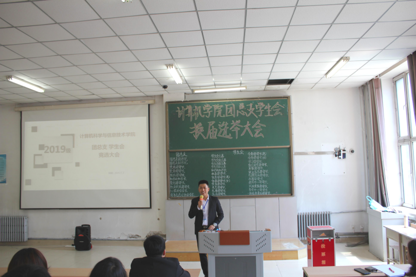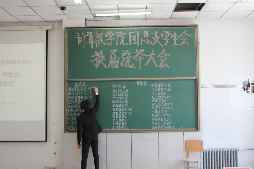 2021年7月2日中午12:00,1946伟德国际源自英国于系楼113召开2019级团总支、员工会换届选举大会。出席此次会议的有党总支书记徐媛、员工党支部书记张宇、辅导员李海波老师及团总支员工会的全体成员,此次大会的投票团队有各位老师、2018级主席团及各部门部长、2020级每班五名同学、2020级各部门全体部员。