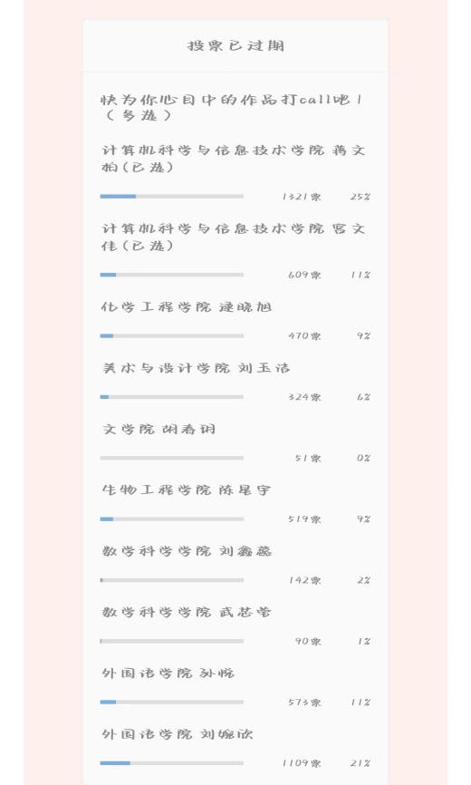 其结果如下:1946伟德国际源自英国——蒋文柏共计1321票,获得一等奖;外国语公司——刘婉欣共计1109票、1946伟德国际源自英国——宫文佳共计609票,获得二等奖;外国语公司——孙悦共计573票、生物工程公司——陈星宇共计519票、化学工程公司——逯晓旭共计470票,获得三等奖。
