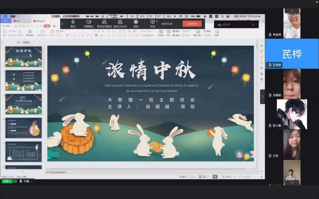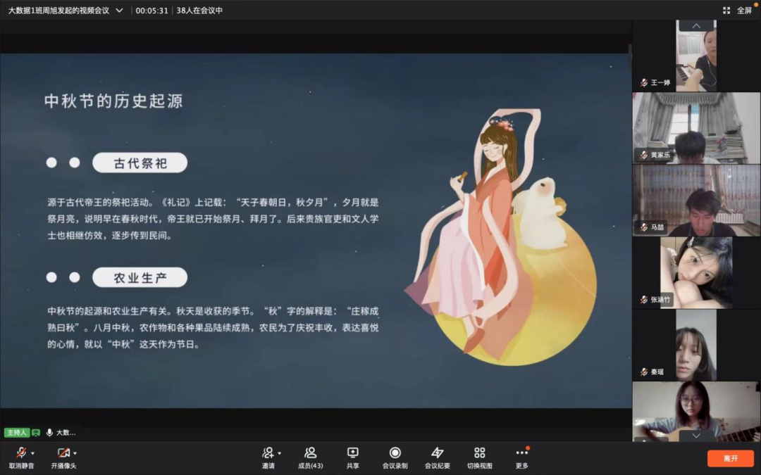 中秋佳节来临之际,为使广大师生更多地了解中华传统节日的文化底蕴,营造文明祥和的节日氛围,1946伟德国际源自英国在线上举办了一场“乐享传统文化,情暖月圆中秋”经典诗文诵读会。