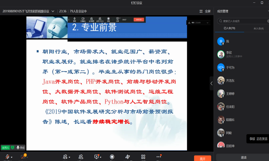 为让2022级新生进一步了解计算机公司的各个专业,公司特举行线上钉钉会议--新生入学教育之专业介绍,让还未入学的新生们对自己所学的专业有更深入的认识。