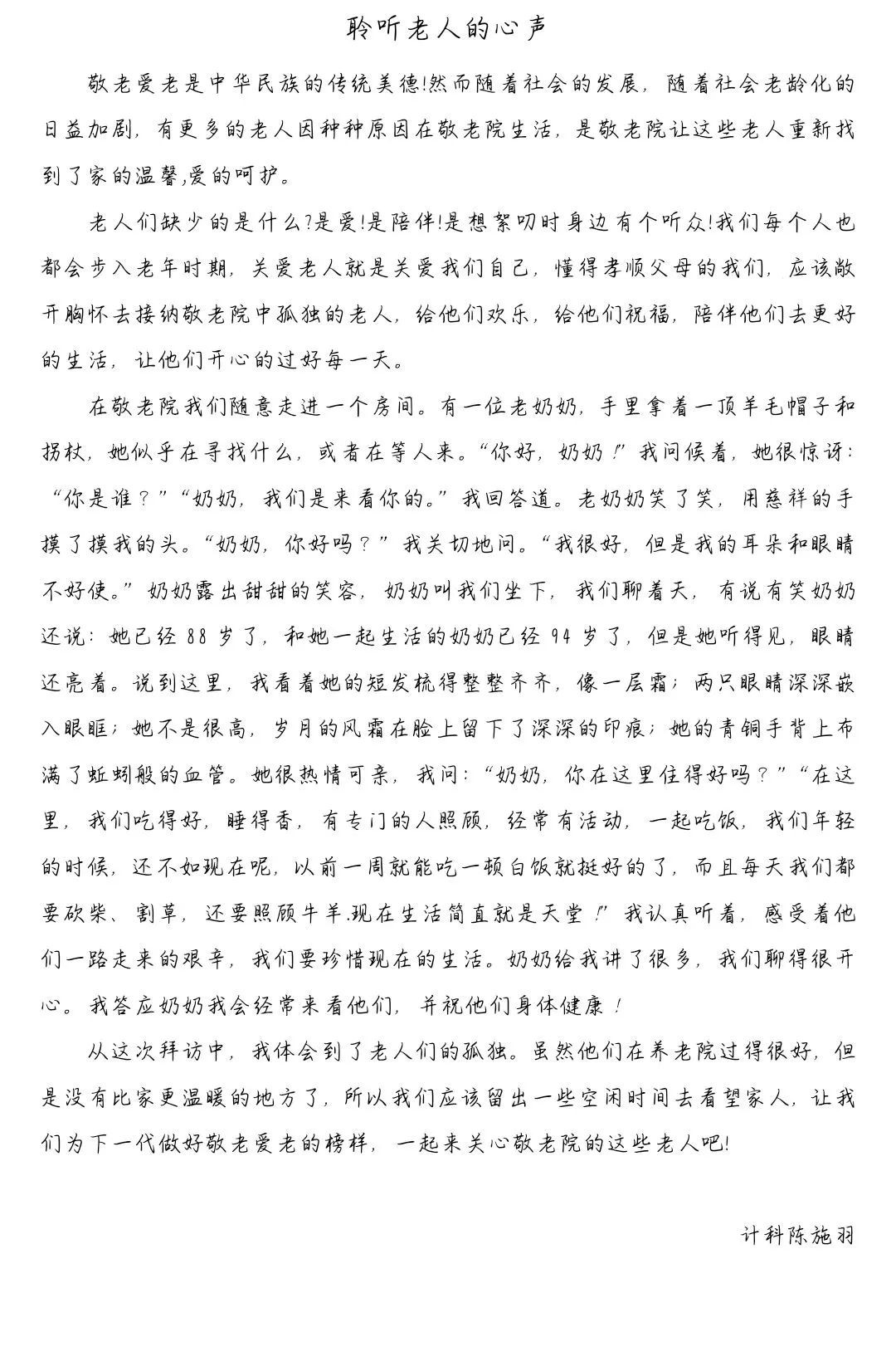 感悟岁月沧桑,聆听老者心声,在老一辈人的娓娓道来中,世事变迁与沉淀下的睿智淡然浮现在他们的眼前,1946伟德国际源自英国的同学们撰写下了心得体会。
