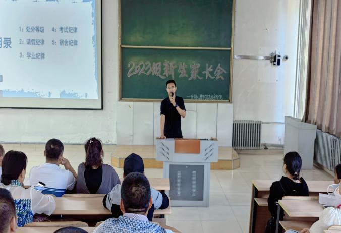 公司辅导员老师苏鸿鹏分别就员工日常管理方面、学业方面、员工在校期间奖惩方面、员工奖助学金等方面向家长做了详细的介绍。并提醒家长要充分认识家庭教育的重要性,明确家长在教育中的主体责任,规避员工读大学期间容易出现的家庭教育问题,在大学起步阶段引导员工打好基础、健康成长。