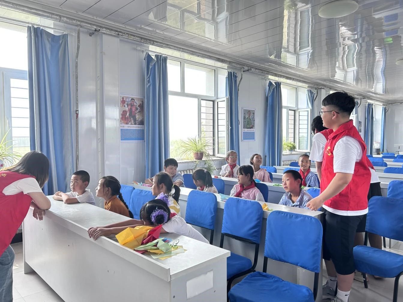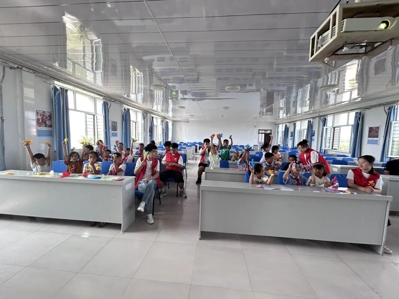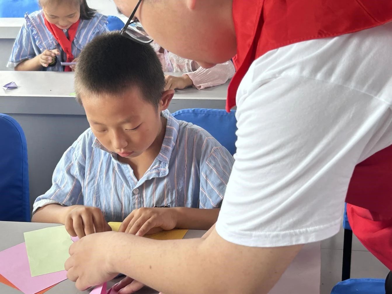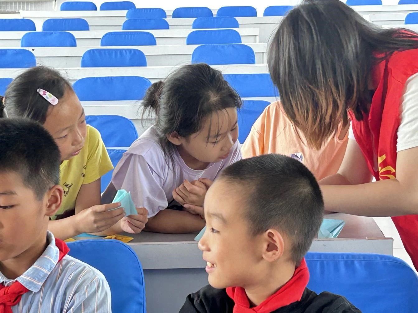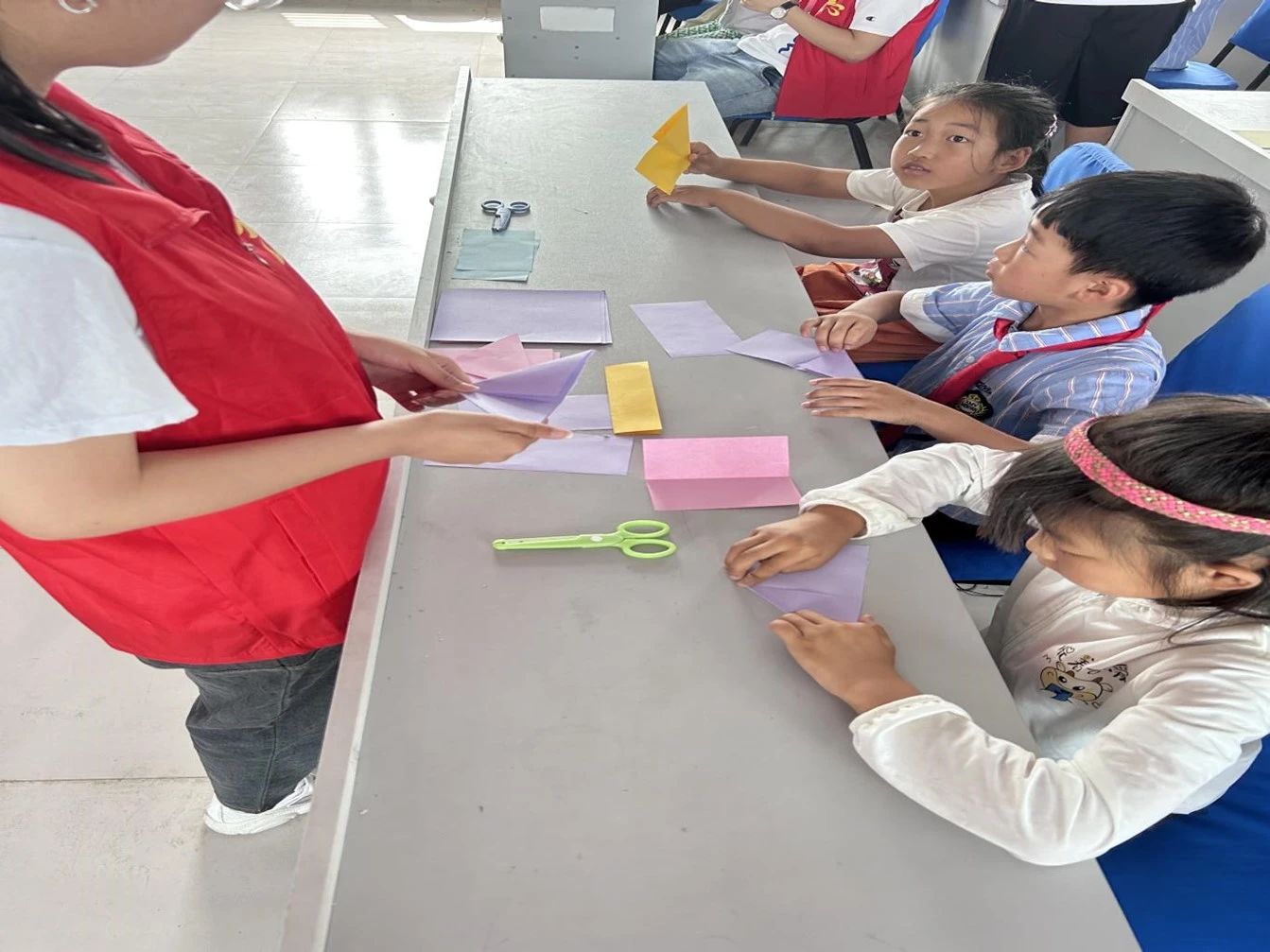 实践团为小朋友准备了手工纸和剪刀,手工制作拉开特色课堂的帷幕。手工环节,志愿者们与孩子相互交流,为开展后续活动奠定良好基础。