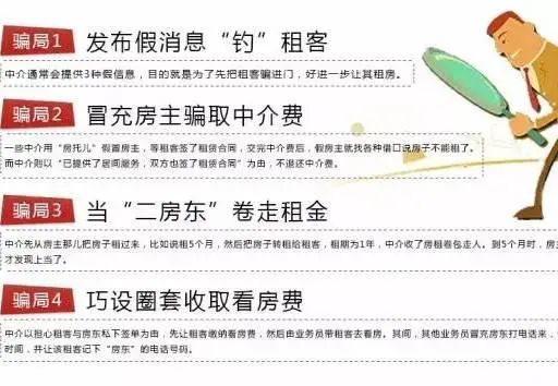租房时,中介只应该承担提供信息、撮合交易的作用,其他所有的事情都应该是你和房东之间直接联系。但现实中,不少房产中介当了“二房东”,你交房租维修,一切事务都交给中介,而真正的房东则基本不出面,这样的房子即使便宜,同学们也不要租。因为这样的中介不少是“黑中介”,你押一付三的钱交了以后,住不到一个月就会以各种理由逼你搬走,而且押金和剩余的租金也不退。