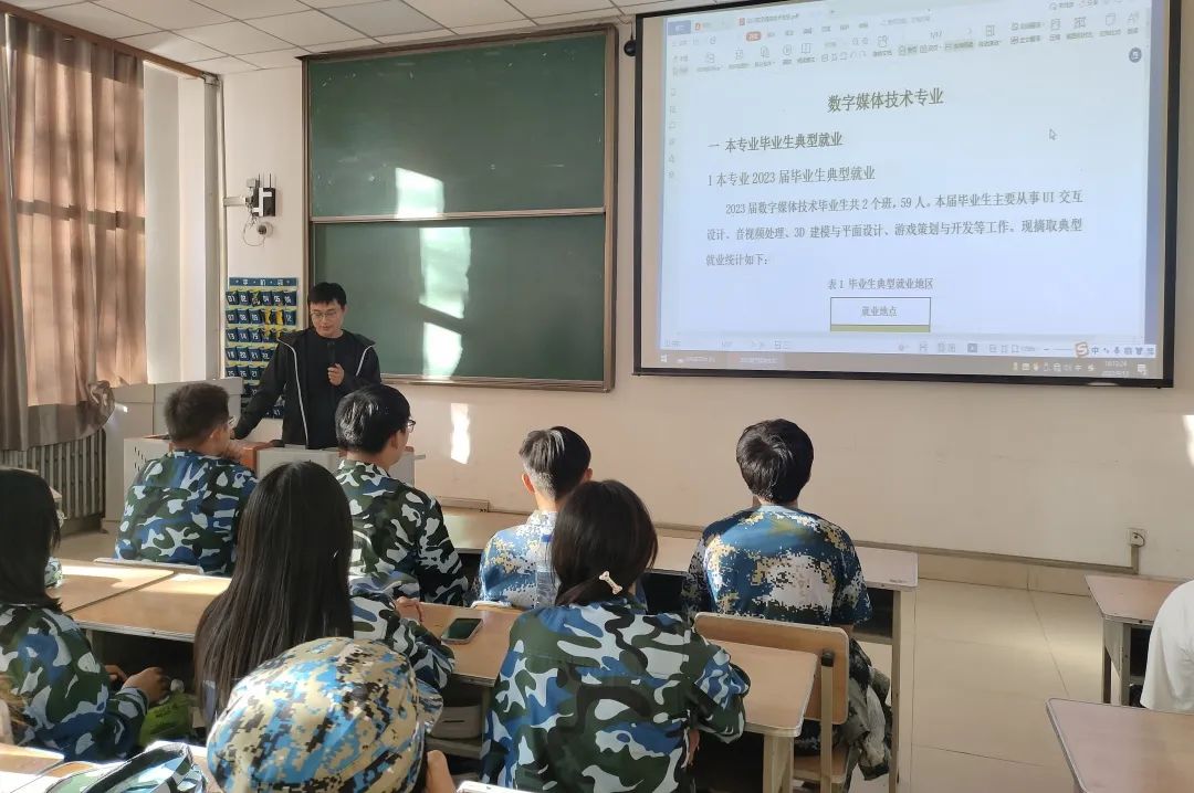 本专业由公司安源老师做具体讲解。数字媒体技术,是一门将抽象的数学作为实物的媒体以及计算机技术三者结合在一起的专业。该专业主要研究场景设计、角色形象设计、游戏程序设计、多媒体后期处理、人机交互技术、宽带媒体技术、视音频编辑技术等内容,是主要针对游戏开发、网站美工、创意设计而设置的。除此以外安源老师还介绍了与本学科相关的竞赛、专业技术学习、专业实习基地以及培养目标等。