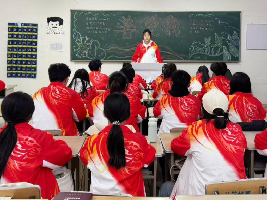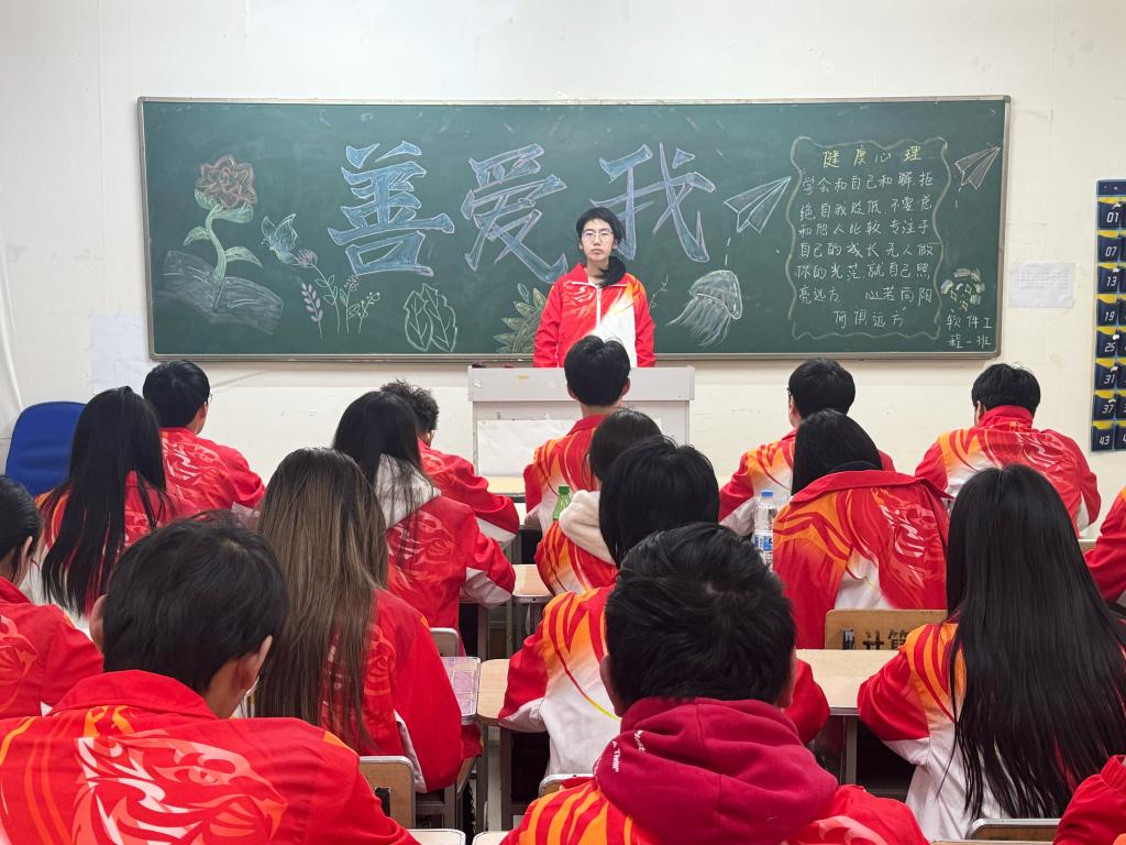 各班心理委员向同学们普及心理健康知识,引导同学们树立善待自我、关爱自我、健康成长的心理健康观念。