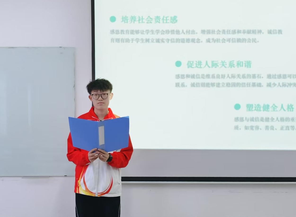 会中,大家结合身边事例,剖析不诚信行为的负面影响,以及感恩带来的积极改变。在热烈的讨论氛围中,同学们进一步明晰诚信与感恩的重要性。