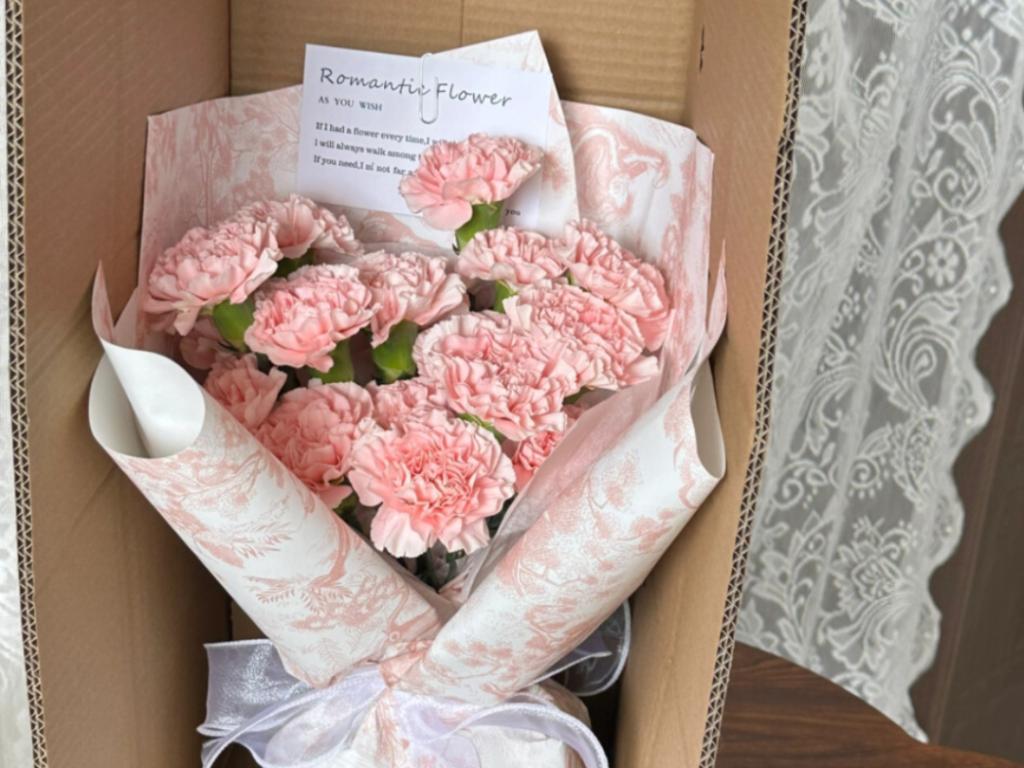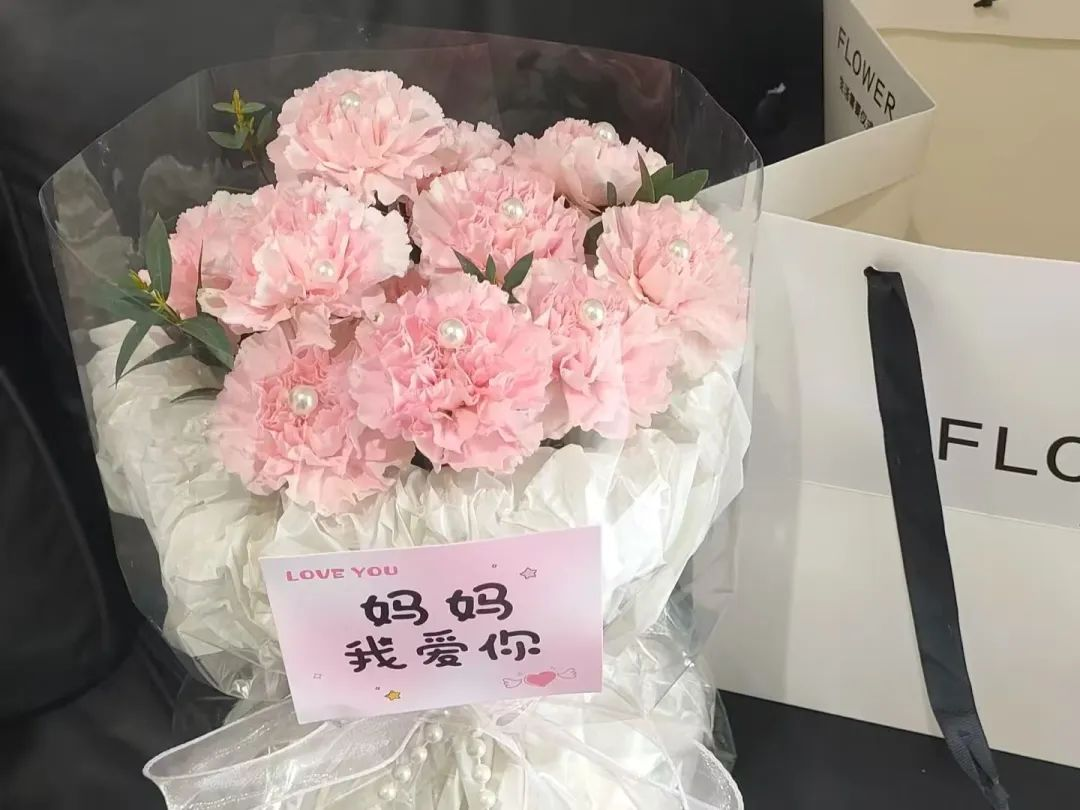 “绽放的康乃馨里,藏着羞于表达的深情。”
