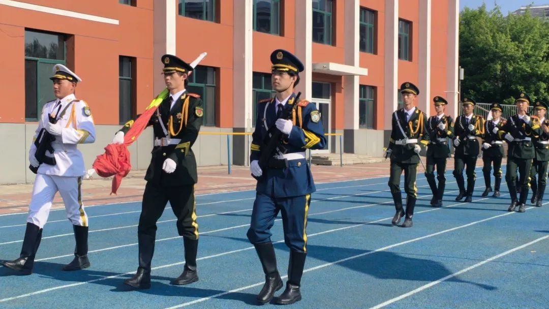在师生的热切注目下,国旗护卫队精神抖擞,踏着铿锵有力的步伐护送国旗进场。7时整,伴随着庄严的国歌,旗手扬起手中的五星红旗,鲜红的国旗冉冉升起,全体师生肃立,目光如炬,国歌响彻校园。