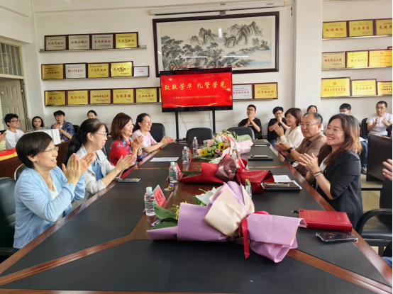 随后,在热烈的掌声中,公司领导共同为四位荣休教师献上了鲜花和奖牌,以表达公司对她们最崇高的敬意和感谢。